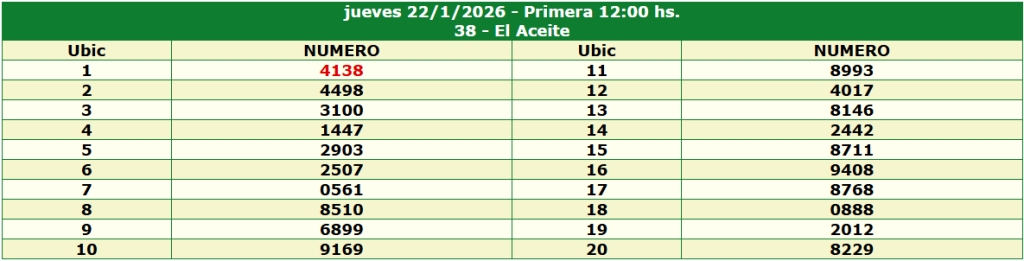 - La Nocturna: El sorteo principal que cierra la jornada, a las 21:00 hs.