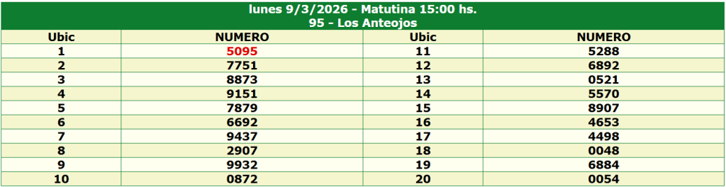 En Ruta1000 consulta los resultados oficiales de la Quiniela Neuquina de hoy en directo, correspondientes al sorteo del 09 Marzo 2026 a las 21:30 hs. Publicamos los números ganadores apenas se realiza el sorteo para que confirmes tu jugada al instante. La Quiniela Neuquina es tradición en la provincia y cada jornada atrae a miles de apostadores. Además de los resultados actuales, en Ruta1000 podrás revisar sorteos anteriores y estadísticas útiles para seguir tu juego. Ingresa ya y revisa en vivo los números de la Quiniela Neuquina de hoy.