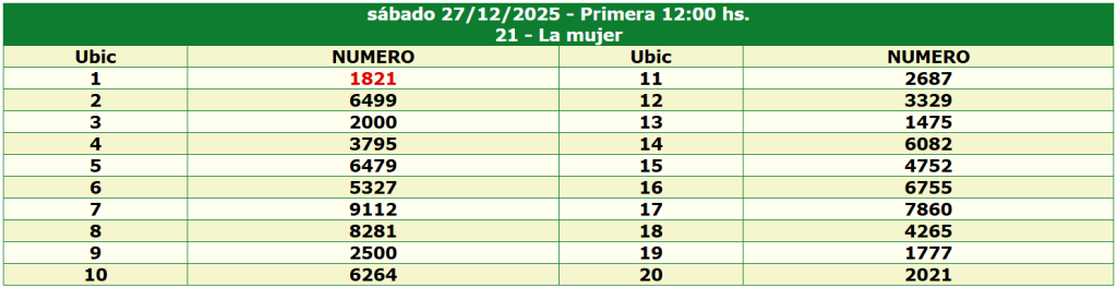 - La Primera: El primer gran sorteo de la mañana, que se realiza a las 12:00 hs.