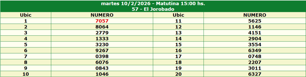 - La Matutina: Ideal para la sobremesa, este sorteo es a las 15:00 hs.