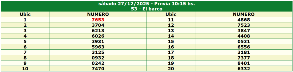 - La Previa: El día comienza temprano con este sorteo, a las 10:15 hs.