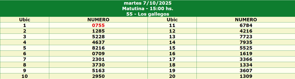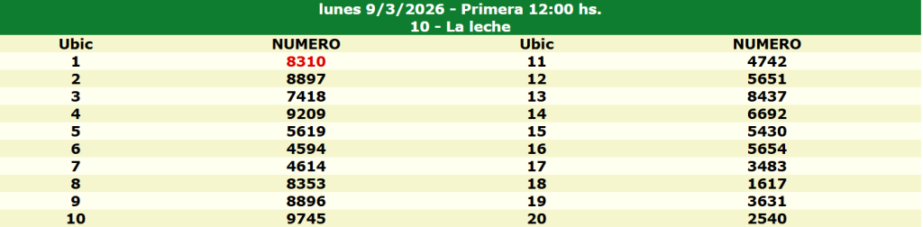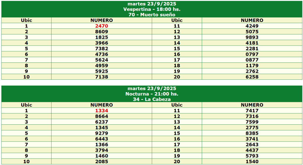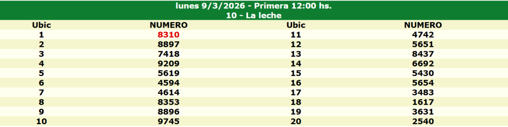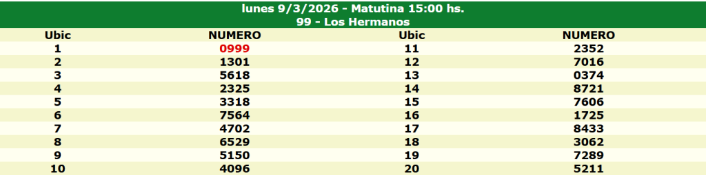 En cada sorteo se otorgan premios a los 20 números que resultan ganadores. El primer premio corresponde al primer número extraído y es el que mayor pago ofrece, usualmente 70 veces el monto apostado si aciertas de forma exacta, según la modalidad y agencia donde realices la jugada.