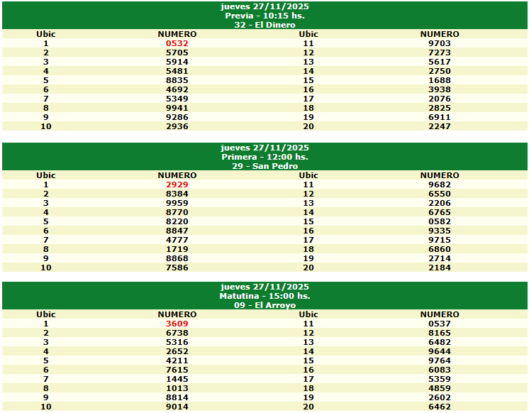 Si te interesa ver los sorteos anteriores, aquí puedes consultar un resumen de días pasados: