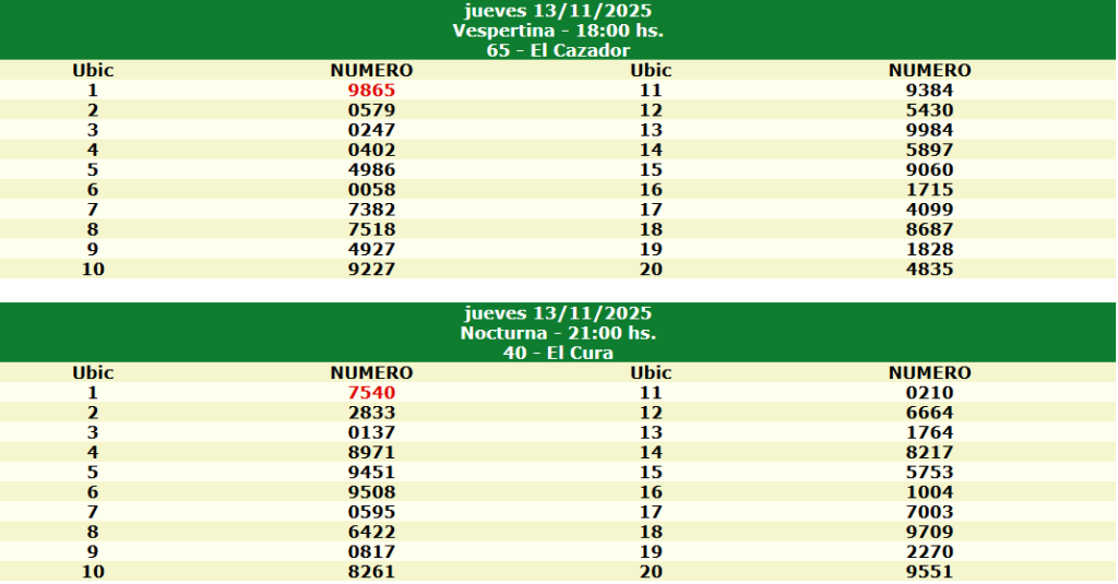 Los resultados se publican en ruta1000.cc tras cada sorteo en vivo.
