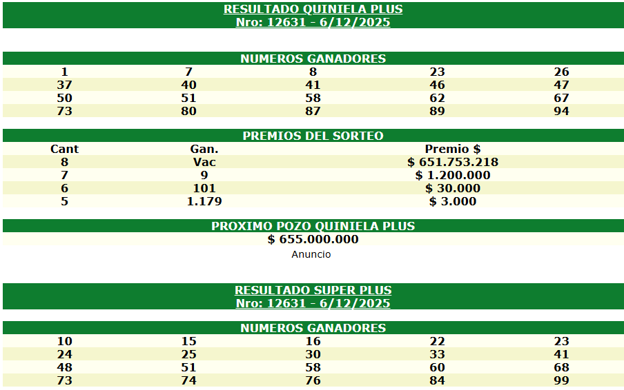 La Quiniela Plus Argentina ofrece a diario la posibilidad de ganar grandes premios, y aquí podrás ver siempre los resultados actualizados del sorteo de hoy. Te mostramos en vivo los números ganadores para que verifiques fácilmente tu jugada sin esperar.
