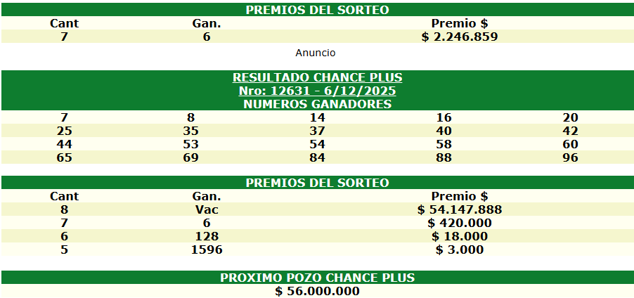 Y como si fuera poco, tus 8 números también juegan en el Chance Plus, ofreciéndote una tercera vía para ganar con un pozo muy atractivo.