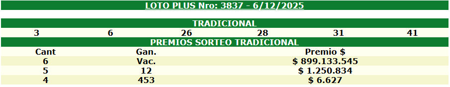 Aquí te presentamos los resultados del sorteo de Loto Plus de la Ciudad de Buenos Aires de este 03 Diciembre 2025. La ansiedad por conocer los números ganadores es parte de la experiencia, y en nuestro portal, te los ofrecemos tan pronto como se realizan los sorteos.