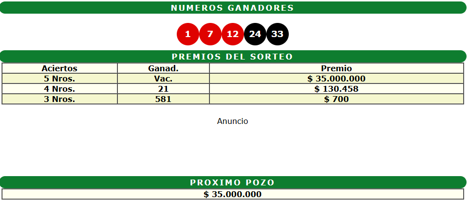 El Loto 5 Plus es un juego de azar argentino donde eliges 5 números entre el 0 y el 36. Para ganar el pozo mayor, necesitas acertar los 5 números, aunque también hay premios por 4 y 3 aciertos, lo que lo hace un juego accesible y con buenas posibilidades de premio. Para más resultados de loterías argentinas, puedes revisar ruta1000.cc.