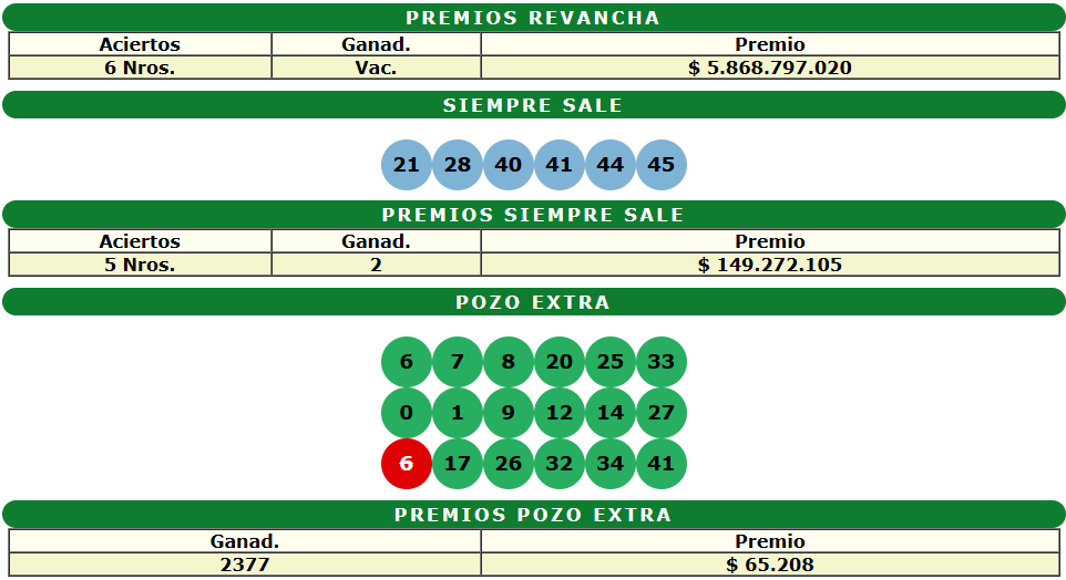 Consulta resultados del Quini 6 de Argentina hoy 28 January 2026. Números ganadores, horarios y premios actualizados de cada sorteo aquí. El Quini 6 Argentina realiza sorteos semanales con grandes premios y en Ruta1000 encontrarás siempre los resultados oficiales de hoy en vivo.