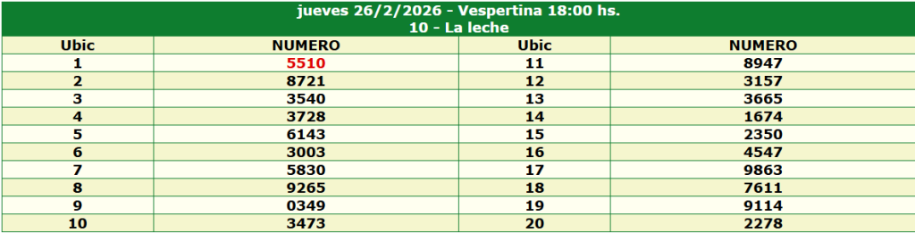 En cada sorteo, se premian las primeras 20 posiciones, siendo el primer premio el de mayor valor, pagando generalmente 70 veces el monto apostado si aciertas el número exacto.