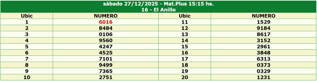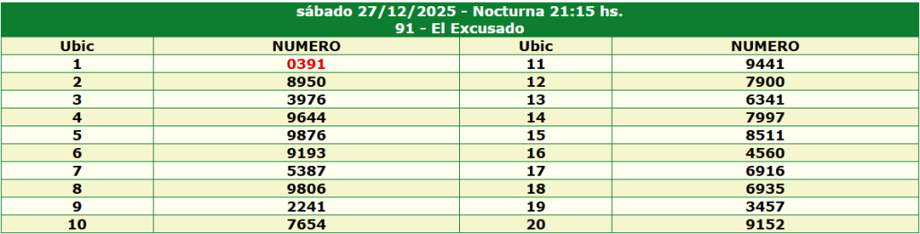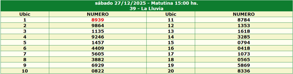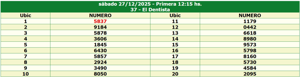 Resultados del Quiniela de Misiones 27 Diciembre 2025