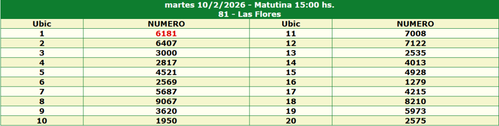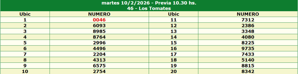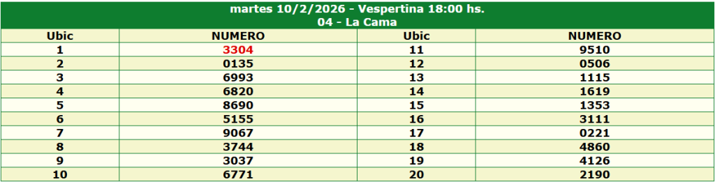 Resultados del Quiniela de Misiones 10 febrero 2026