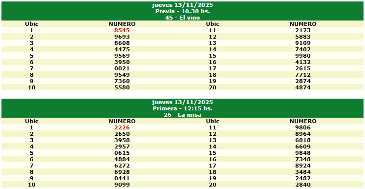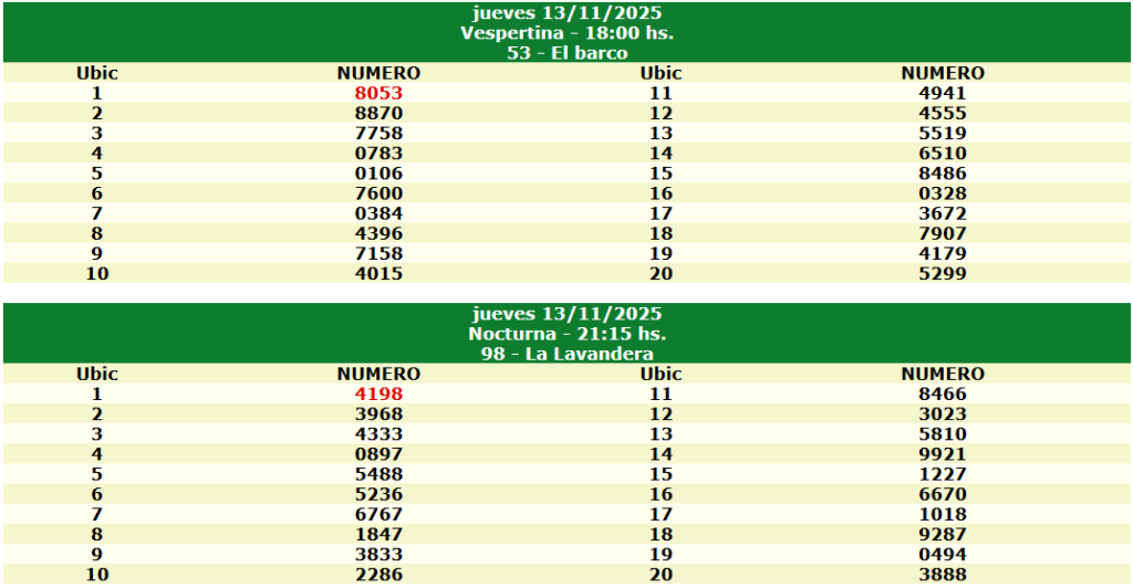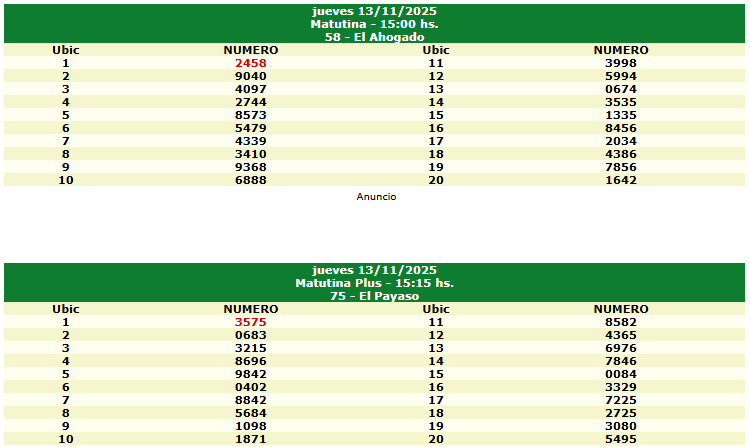 Resultados del Quiniela de Misiones 13 Noviembre 2025