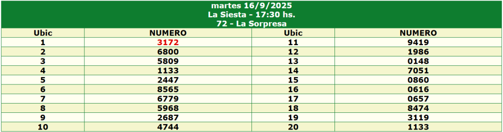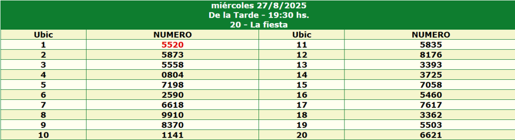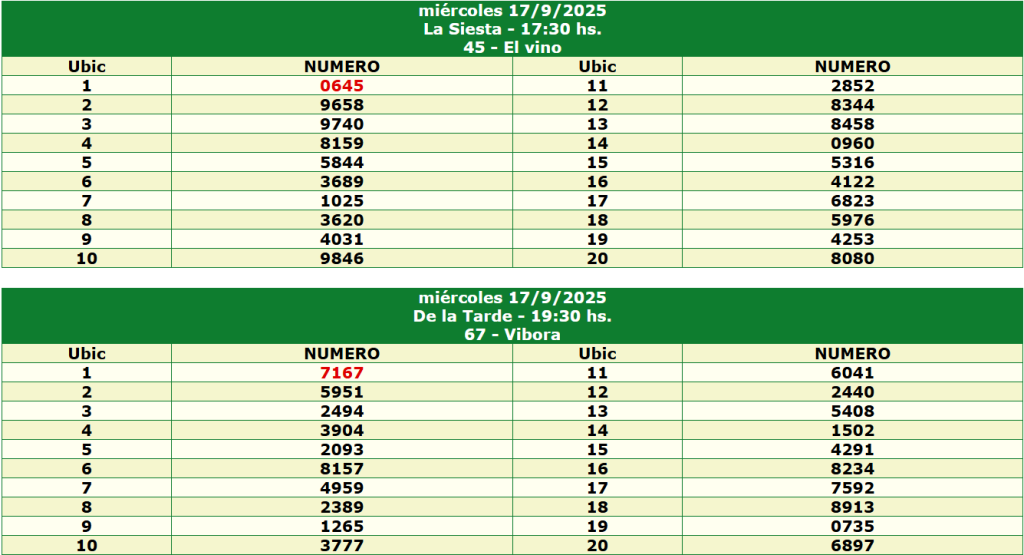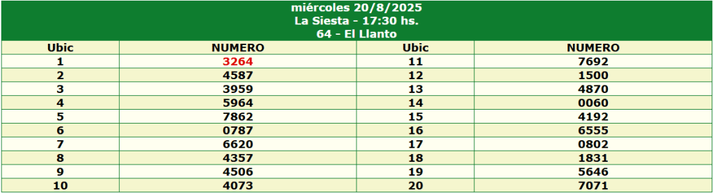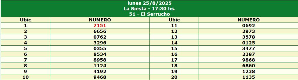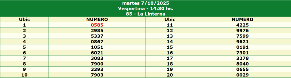 Resultados del Quiniela de Tucumán – 07/10/2025