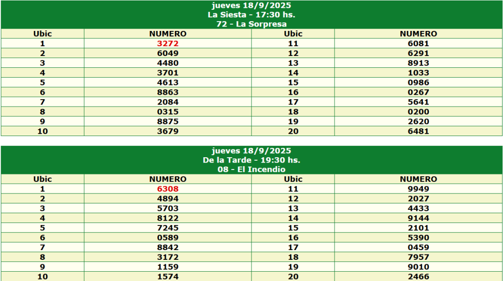 Los resultados se actualizan en vivo en ruta1000.cc tras cada sorteo.