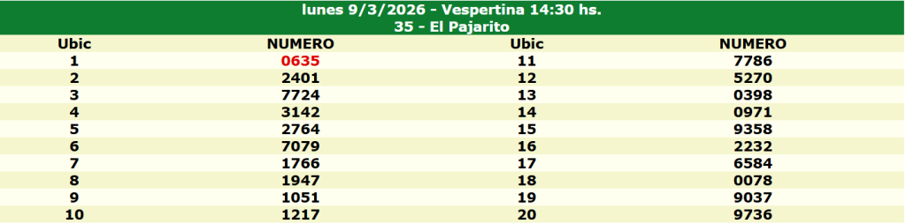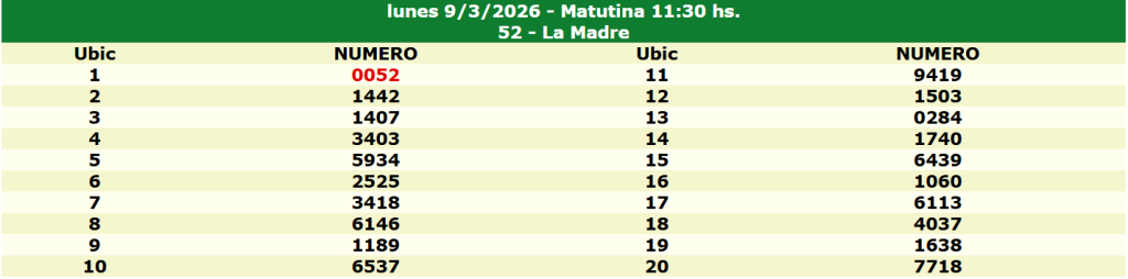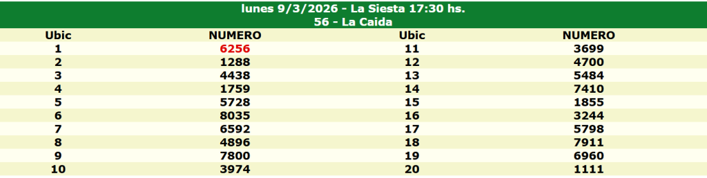 Resultados del Quiniela de Tucumán 09 Marzo 2026
