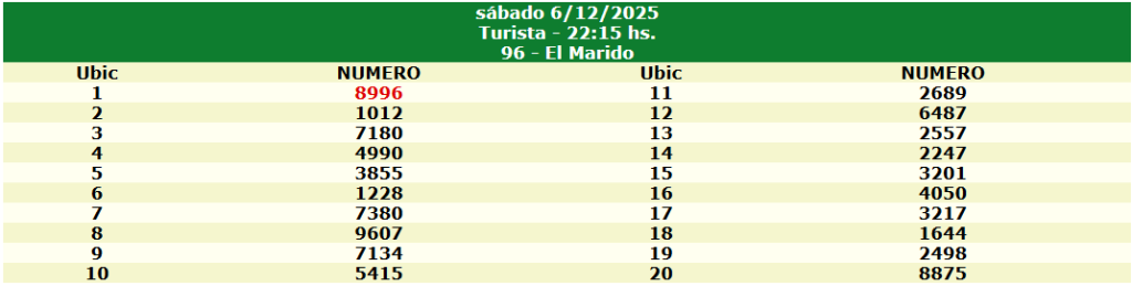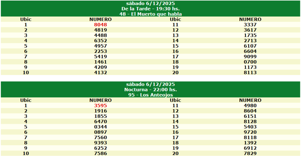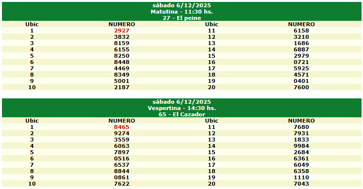 Resultados del Quiniela de Tucumán 6 Diciembre 2025