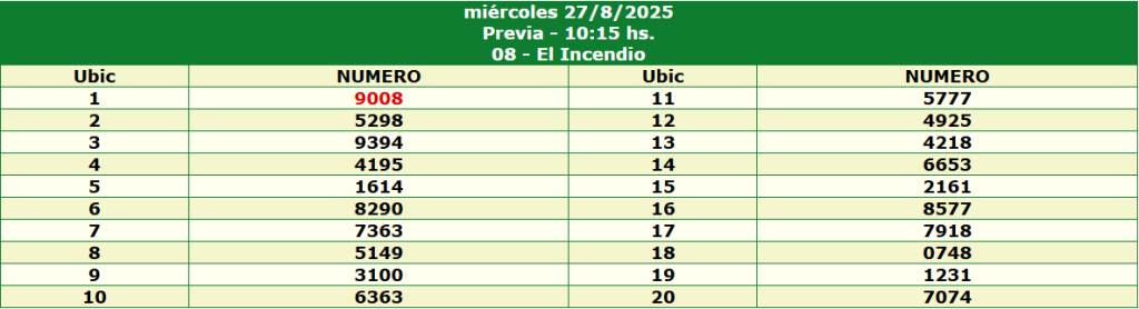 Los números más salidos en la Tómbola Jujena durante el último mes fueron: