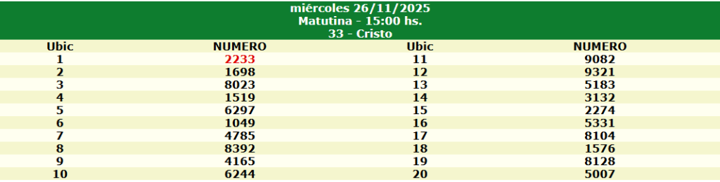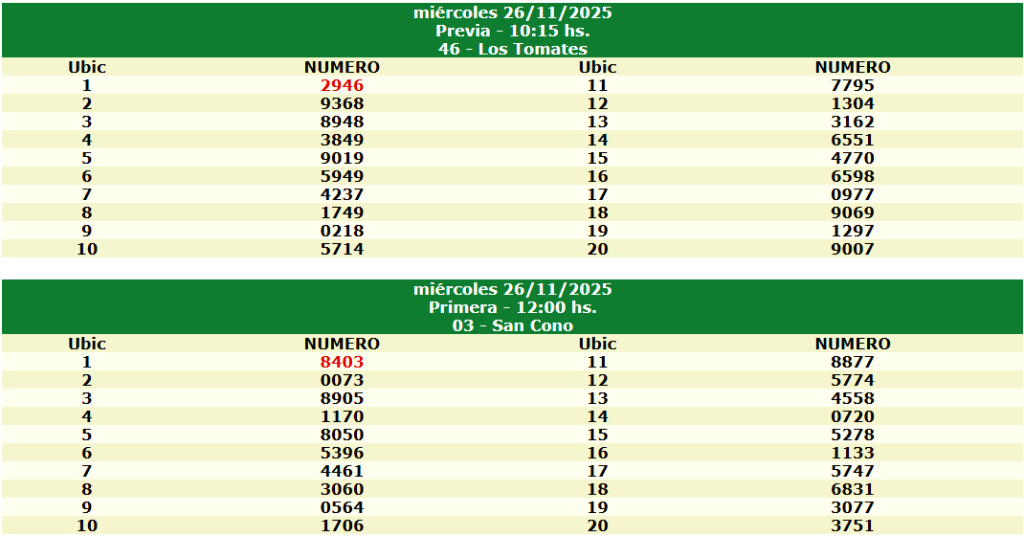 La Tómbola Jujeña Argentina realiza sorteos diarios y en Ruta1000 podrás consultar siempre los resultados oficiales de hoy en vivo, correspondientes al sorteo del 26 de Noviembre de 2025 a las 20:30 hs. Nuestro portal publica los números ganadores apenas son anunciados, para que confirmes tu jugada sin demoras. Miles de apostadores siguen cada sorteo con entusiasmo y confían en Ruta1000 para obtener información clara, rápida y confiable. También podrás revisar resultados anteriores y estadísticas para analizar tu juego. Ingresa ahora y consulta en directo los números de la Tómbola Jujeña de hoy.
