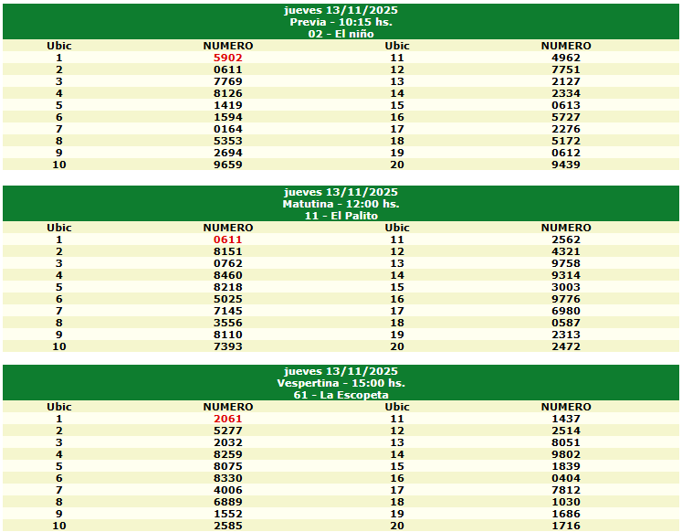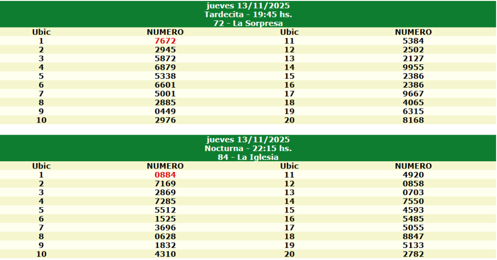 Resultados del Tómbola Santiagueña 13 Noviembre 2025